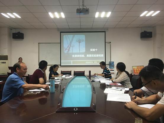 本次试讲邀请了教研室陈泽慧教授、胡永林教授、何应中副教授、刘凤副教授、张丽丽博士等教师参加了本次试讲。在试讲前,教研室主任陈泽慧教授指出,试讲要严格按照学校和医学检验系相关规定执行。教研室教师刘清亮对《临床微生物学检验技术》课程的第一次实验课“细菌形态学检查技术”进行了试讲,黄健博士对《临床微生物学检验技术》课程中第二十二章“真菌学概论”进行了试讲,董泽令老师对《临床微生物学检验技术》课程中第三十一章到第三十八章内容进行了试讲,杨欢老师对《临床微生物学检验技术》课程的第十次实验课内容进行了试讲。
