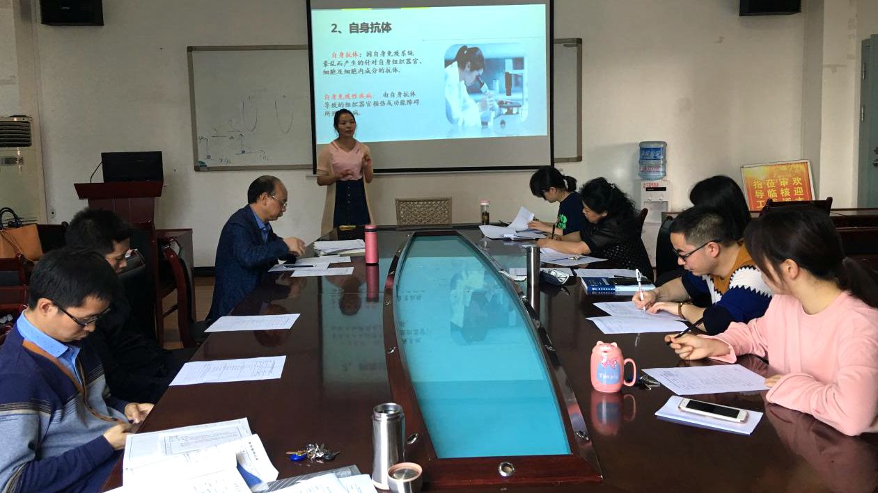 为积极贯彻落实学校和检验医学院下发的试讲和集体备课制度,切实提高教学质量,根据教研室教学计划安排,临床微生物免疫检验教研室于2018年3月20日进行新教师试讲。