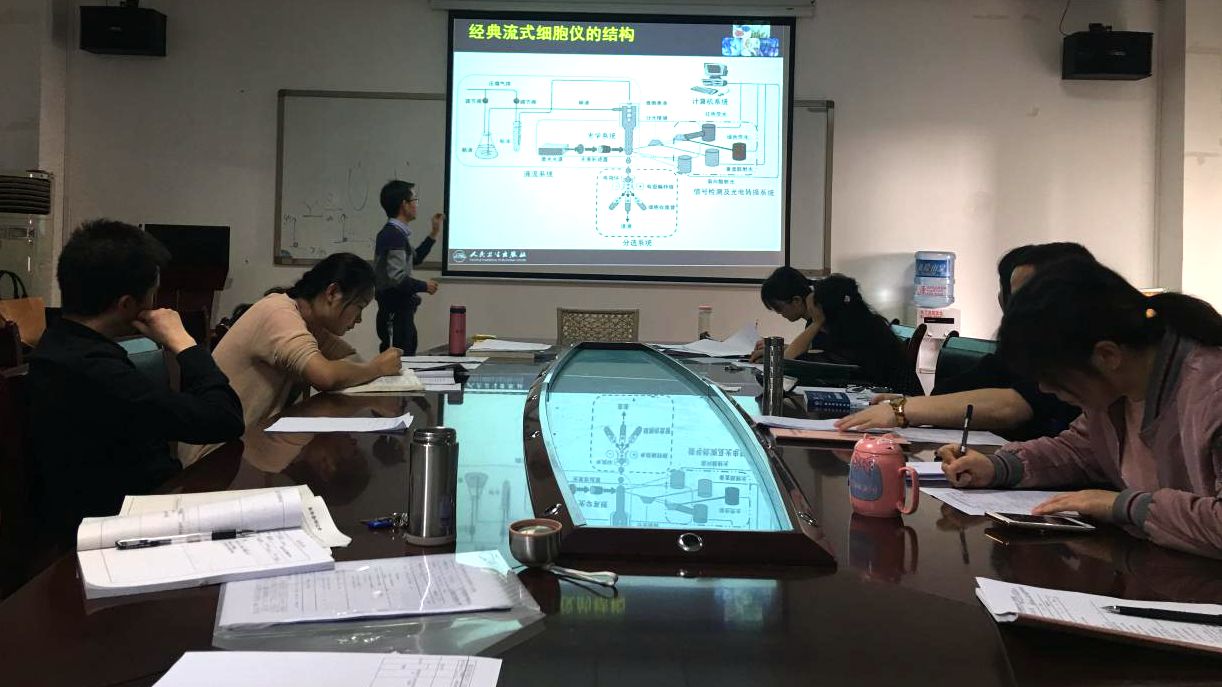 本次试讲邀请了教研室主任陈泽慧教授以及检验医学院黄俊琼教授、何应中副教授、黄健副教授等教师参加。教研室杨小叶老师对《临床免疫学检验技术》课程的第4次实验课“免疫印迹试验”进行了试讲,黄健博士对《临床免疫学检验技术》课程中第十三章“流式细胞分析仪”进行了试讲。