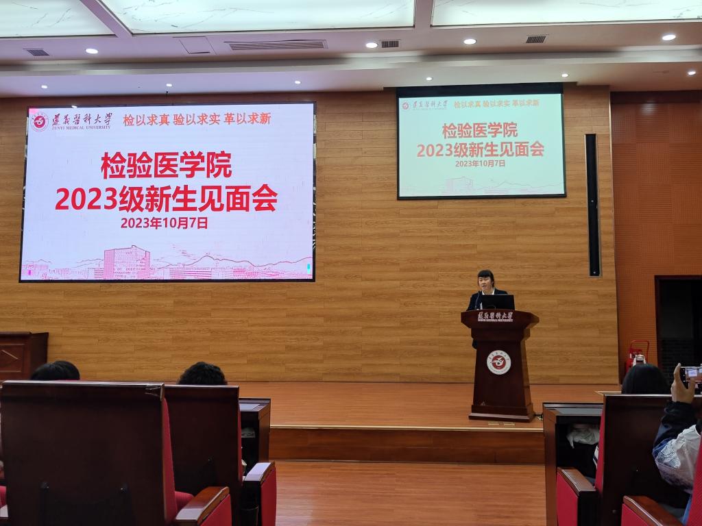 为深入贯彻党的教育方针,落实立德树人根本任务,指导和帮助2023级新生尽快了解和适应新环境、端正学习态度、明确学习目的、增强学习动力、科学规划学习生活,做好新生入学教育,检验医学院于2023年10月7日19:00在新蒲校区道德讲堂举办了2023级新生见面会。检验医学院党委书记周光润、检验医学院副院长闵迅博士出席本次活动,各科室负责人、辅导员、兼职班主任参与本次活动。本次活动由检验医学院办公室主任蔡亮容主持。