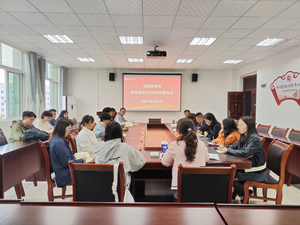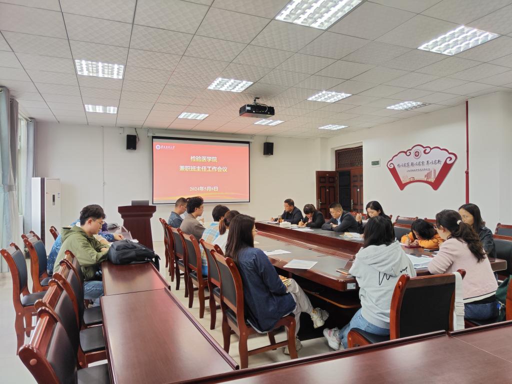 为进一步落实立德树人根本任务,健全“全员全过程全方位”育人机制,推动学院优良学风建设,提升人才培养质量,5月8日下午3点,检验医学院召开了兼职班主任工作会议暨学风建设研究部署会议。检验医学院党政领导班子成员、教务科负责人、专职辅导员、兼职班主任以及各年级学生代表参加了本次会议。会议由检验医学院副院长杨艳主持。