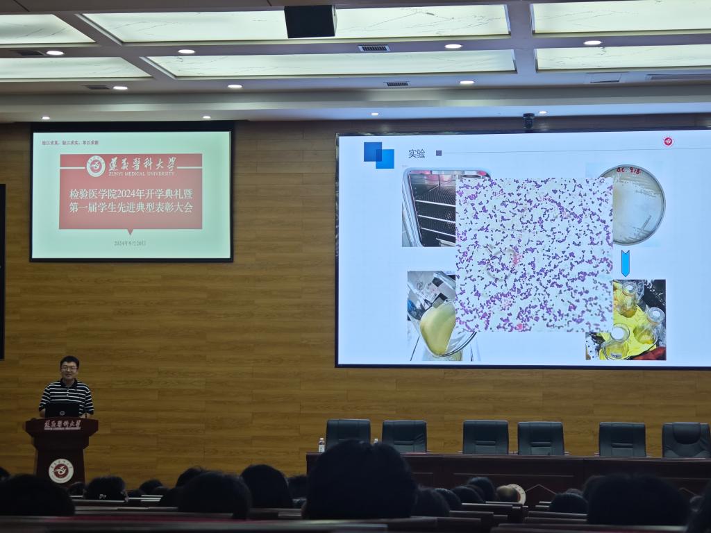 9月20日晚7点,检验医学院在新蒲校区人文楼报告厅召开2024年开学典礼暨2023-2024学年学生先进典型表彰大会。学院班子成员、内设机构负责同志、各教研室主任、高层次人才、兼职班主任和全体在校生参加了大会。本次大会由学院党委副书记罗治宇主持。