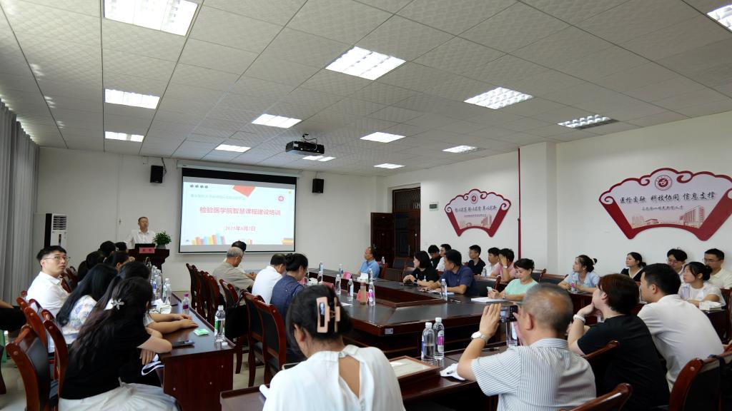 为深入贯彻党的教育方针,加强师资队伍建设,推进教育数字化转型,提升教师智慧教学能力与课程建设水平,并强化医教协同、推进实习基地同质化管理及规范本科教学资料归档工作,检验医学院于2025年8月2日在新蒲校区成功举办“智慧课程建设培训暨本科教学资料归档研讨沙龙”专项活动。学校教学督导专家薛黔、陈双华、杨伟明、罗华莅临指导,学院领导班子成员出席。各教研室负责人、教学骨干、授课教师,以及来自11家实习基地的教学负责人和带教老师等90余人参加。