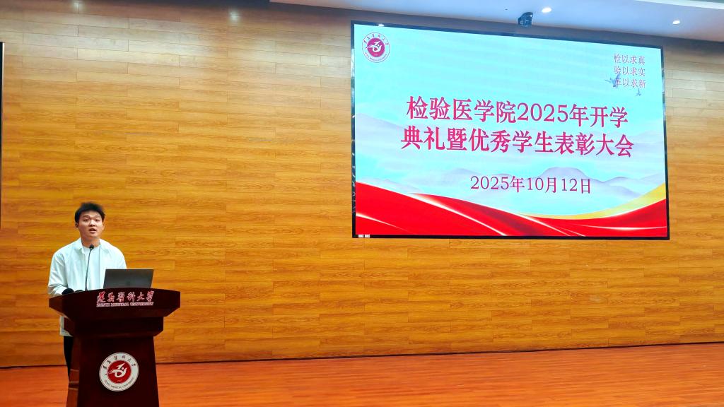 10月12日晚7时,检验医学院在新蒲校区人文楼报告厅隆重举行2025年开学典礼暨优秀学生表彰大会。学院领导班子成员、内设机构负责人、各教研室主任、专兼职辅导员以及全体在校学生共同参会。