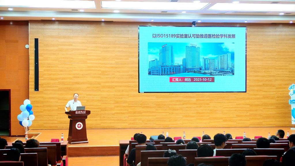 典礼伊始,学院副院长闵迅教授以《ISO15189实验室认可助推遵义检验学科发展》为题,从办学历史、师资力量、学科建设等多个维度,系统介绍了学院的发展脉络与丰硕成果,生动展现了学院雄厚的办学实力、鲜明的专业特色和深厚的历史积淀,使新生对学院充满信心与期待。