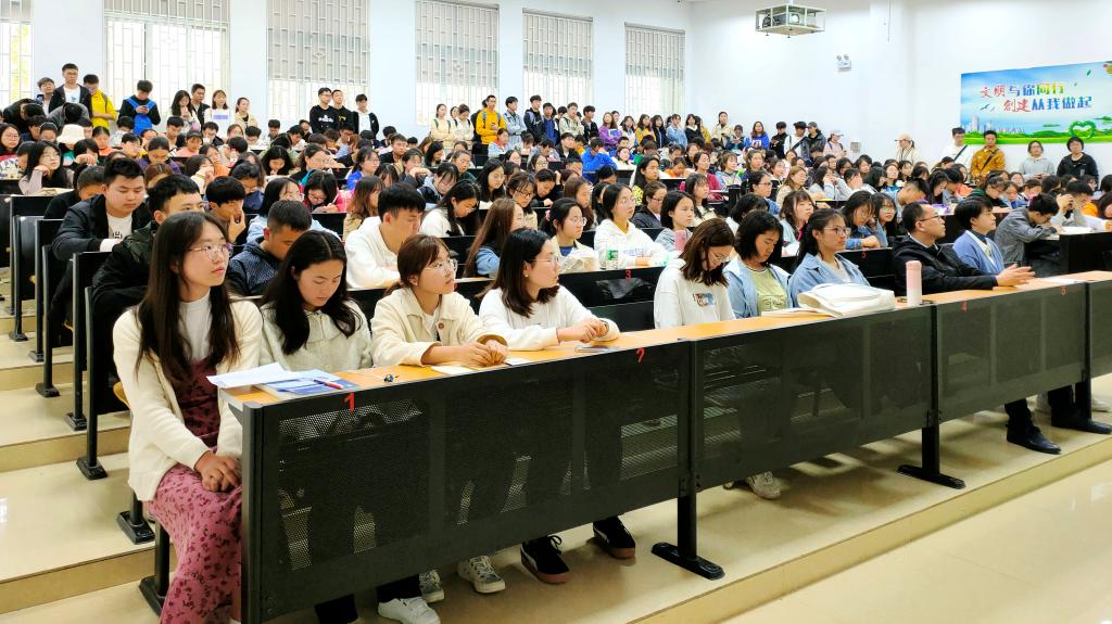 70年来,中国为什么能走过光辉历程、创造伟大奇迹,归根结底是因为有中国共产党的坚强领导,在于我们党始终不忘初心、牢记使命。他希望同学们能够努力学好把马克思主义基本原理,同中国具体国情相结合,不断深入学习领悟习近平总书记重要讲话精神,用青春的底色引领了中国社会的发展,为实现中华民族的伟大复兴而奋发努力。(撰稿及摄影:付 裕 审 稿:蔡亮容)