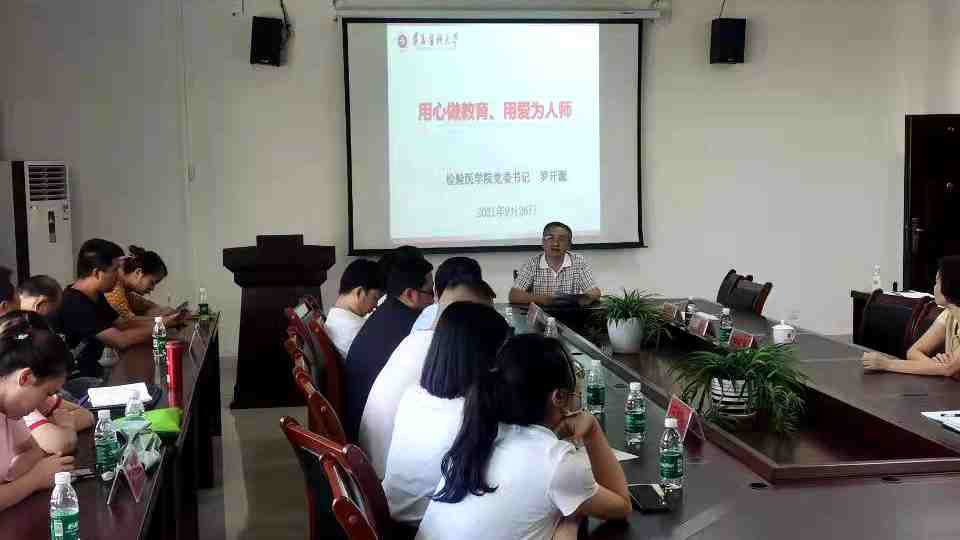 为贯彻落实党中央、国务院《关于全面深化新时代教师队伍建设改革的意见》和《深化新时代教育评价改革总体方案》,加强检验医学院新时代高校教师队伍建设改革,促进教师专业成长,提升师资队伍素质,实现学院全面和可持续发展。检验医学院党委罗开源书记、林世德院长于9月26日在新蒲校区检验医学院会议室为全院47名中青年及骨干教师开展培训;同时学院还邀请基础医学院党委书记、人文医学研究中心研究员龙艺教授开展题为“从无声到有声 无为到有为”的讲座,会议由学院党委罗开源书记主持。