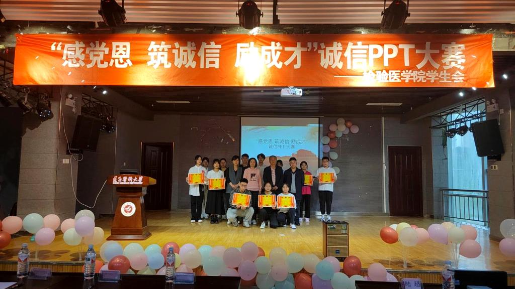 为推动学院资助工作持续、健康开展,宣传学生资助政策,普及有关知识,培养大学生诚信意识,增强大学生的信用观念,遵义医科大学(新蒲校区)检验医学院于2022年5月26日16:00在学生事务中心二楼组织开展了“感党恩,筑诚信,励成才”诚信PPT大赛。检验医学院党委书记罗开源、办公室主任蔡亮容、学生第一党支部副书记陆超、实验室胡永林老师、团学干部以及检验医学院在校学生参加此次活动。