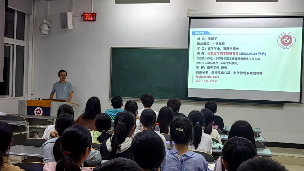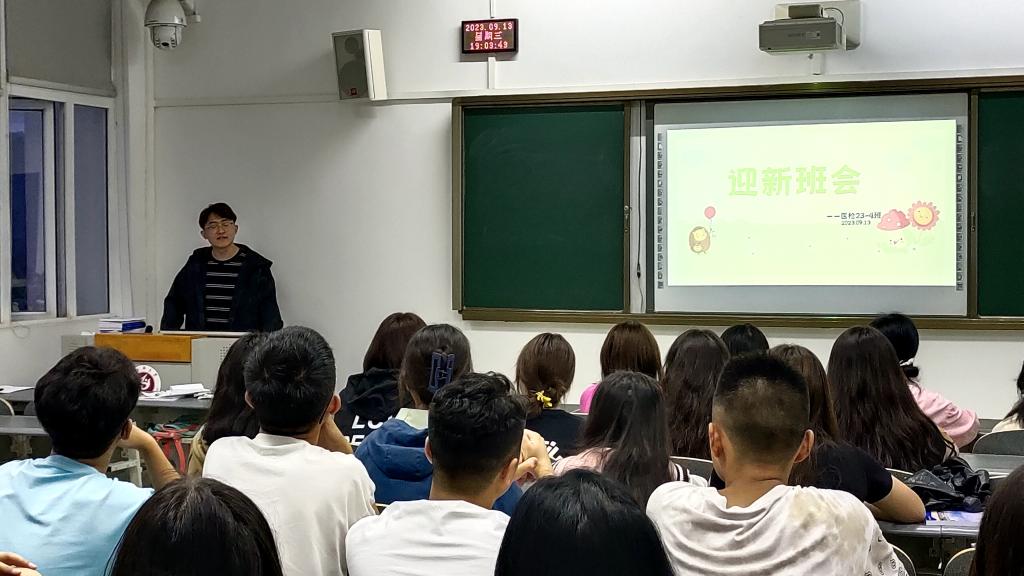 进一步做好期初学生教育管理工作,营造良好校风学风在圆满完成两天的迎新工作、次日即将开启军训的2023年9月13日晚上,检验医学院以班级为单位,召开了丰富多彩的“开学第一课”主题班会。班会由各班兼职班主任、班导主持,主要围绕致欢迎辞、新生自我介绍、临时负责人(班委)竞选、校规校纪教育、网络安全、防范网络诈骗、行为规范引导、答疑解惑等内容展开,以帮助23级新生尽快适应新环境,开启新征程。