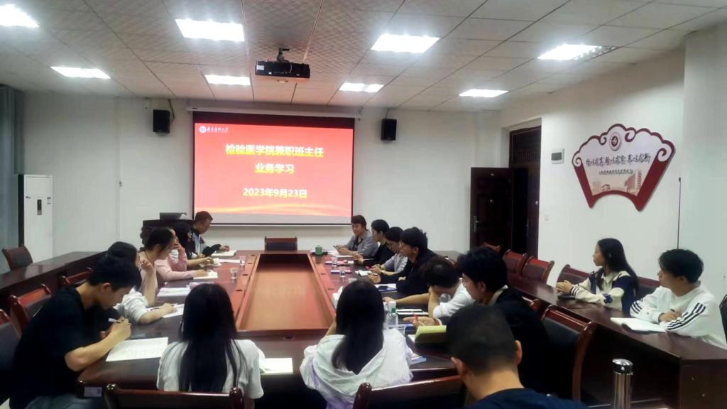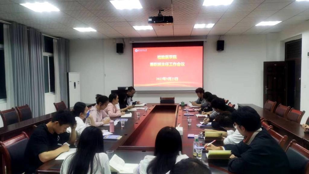 首先业务学习环节由教务科王勇祥老师领学了本科教育教学审核评估有关知识。其次是工作部署,会议传达学习了学校、检验医学院兼职班主任有关管理制度。