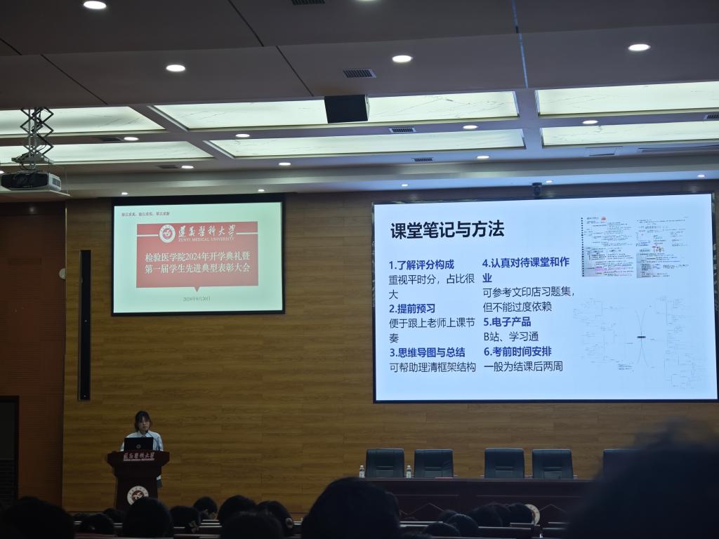 9月20日晚7点,检验医学院在新蒲校区人文楼报告厅召开2024年开学典礼暨2023-2024学年学生先进典型表彰大会。学院班子成员、内设机构负责同志、各教研室主任、高层次人才、兼职班主任和全体在校生参加了大会。本次大会由学院党委副书记罗治宇主持。