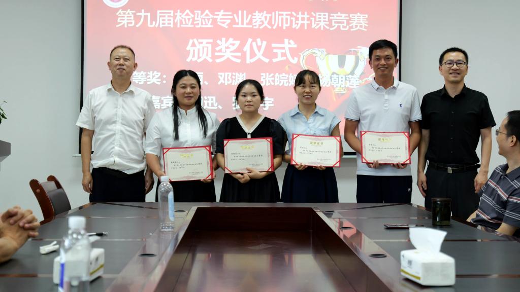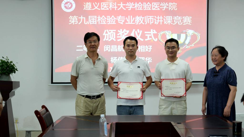 经过激烈角逐,遵义医科大学附属医院邹梅老师、遵义医科大学第二附属医院王榕老师荣获一等奖;遵义医科大学附属医院闵昌航老师、遵义医科大学第三附属医院陈相好老师荣获二等奖;遵义医科大学第二附属医院蒋丽、遵义医科大学附属医院张皖婷、安顺市人民医院邓渊、贵州茅台医院杨朝莲4位教师荣获三等奖;杨隆兵等4位教师荣获鼓励奖。获奖教师代表邹梅、王榕表示:“作为一名检验新人能够获得本次竞赛一等奖,既是对自己入职以来在教学工作方面的肯定,更与检验院科领导精心搭建竞赛平台、导师团队悉心指导密不可分”。