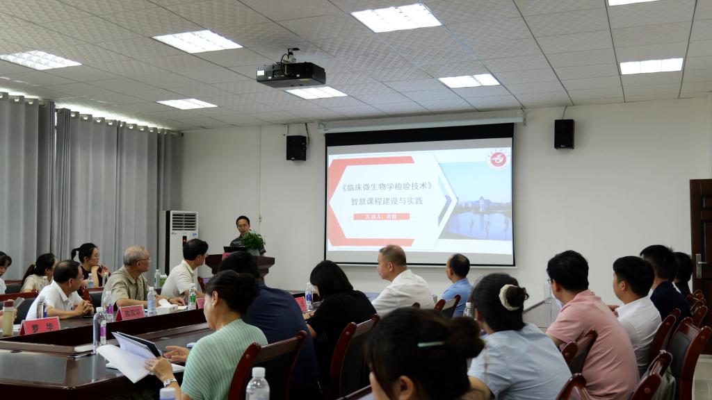 黄健教授以“《临床微生物学检验技术》智慧课程建设与实践”为题作报告,深入剖析了人工智能赋能教育的趋势、智慧课程建设面临的挑战与改革思路,并系统介绍了该课程的策划设计、知识图谱建设及AI工具在教学中的应用实践。薛黔、杨伟明两位教学督导专家点评时给予高度评价,认为授课内容详实、分析透彻、可操作性强,富有启发性。
