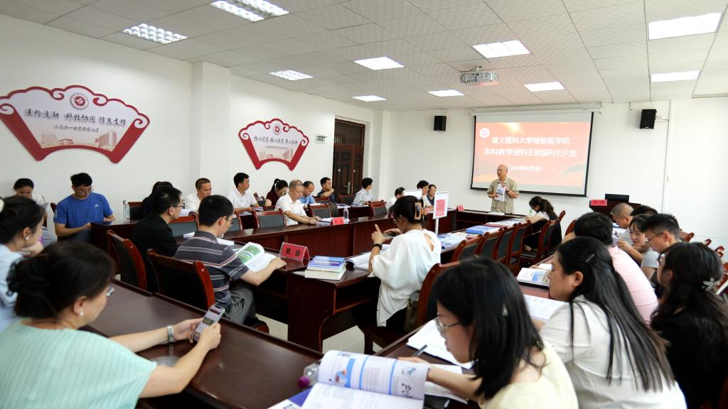 据悉,检验医学院在2020年获批国家级一流建设专业、2021年获批省级临床重点建设学科;以及获批省部级科技成果奖三等奖3项,省级本科教育教学成果二、三等奖3项的基础上,其临床、教学及科研均迈向发展快车道。近5年获批国家自然科学基金14项,获批省级一流金课5门、省级课程思政建设项目2门、省级智慧建设课程2门。教师主参编人民卫生出版社、科学出版社等国家级出版社专著和教材58部,其中主编、副主编21部(共143人次参编)。薛黔教授在总结发言中高度评价了学院对教学工作的高度重视,充分肯定了各教研室在资料归档工作中的细致与成效,并就教学资料的管理与应用给予了专业指导。与会教师围绕教学档案管理的规范要求、常见问题、解决方案及实习基地同质化管理等议题进行了深入交流研讨。