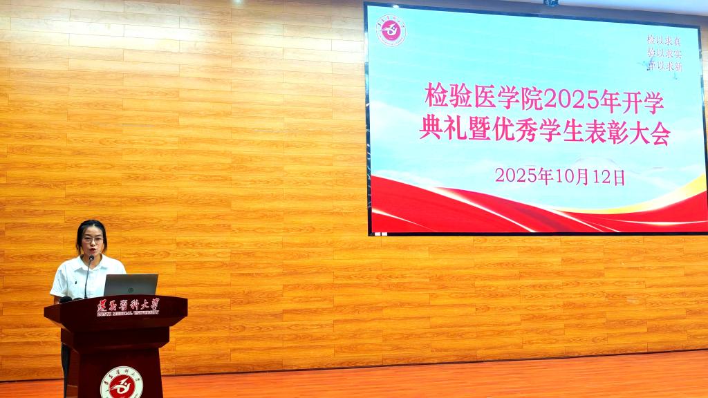10月12日晚7时,检验医学院在新蒲校区人文楼报告厅隆重举行2025年开学典礼暨优秀学生表彰大会。学院领导班子成员、内设机构负责人、各教研室主任、专兼职辅导员以及全体在校学生共同参会。