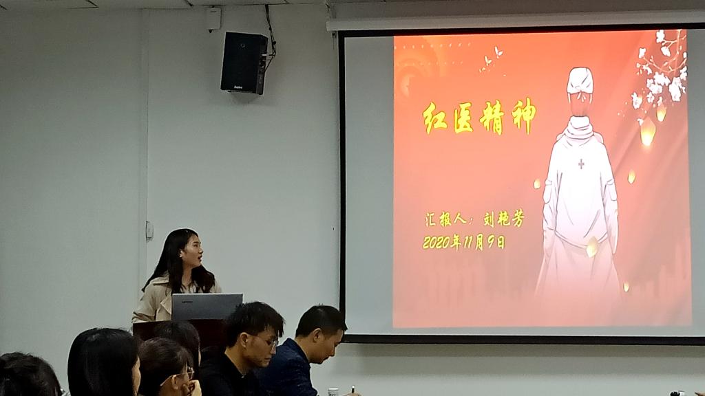 在接下来的“讲党课、讲好党课”环节,刘艳芳同志以“红衣精神”为主题,讲述新时代应如何弘扬“红医精神”,做一名悬壶济世、妙手仁心的医务工作者,促进祖国卫生事业的发展;杨荣韬同志以“党的十九届第五次全体会议学习报告”学习心得为演讲主题;阳诗蕾同志则从“坚定文化自信,实现民族复兴”的角度为主题分别进行了精彩演讲,赢得全体党员的热烈掌声!