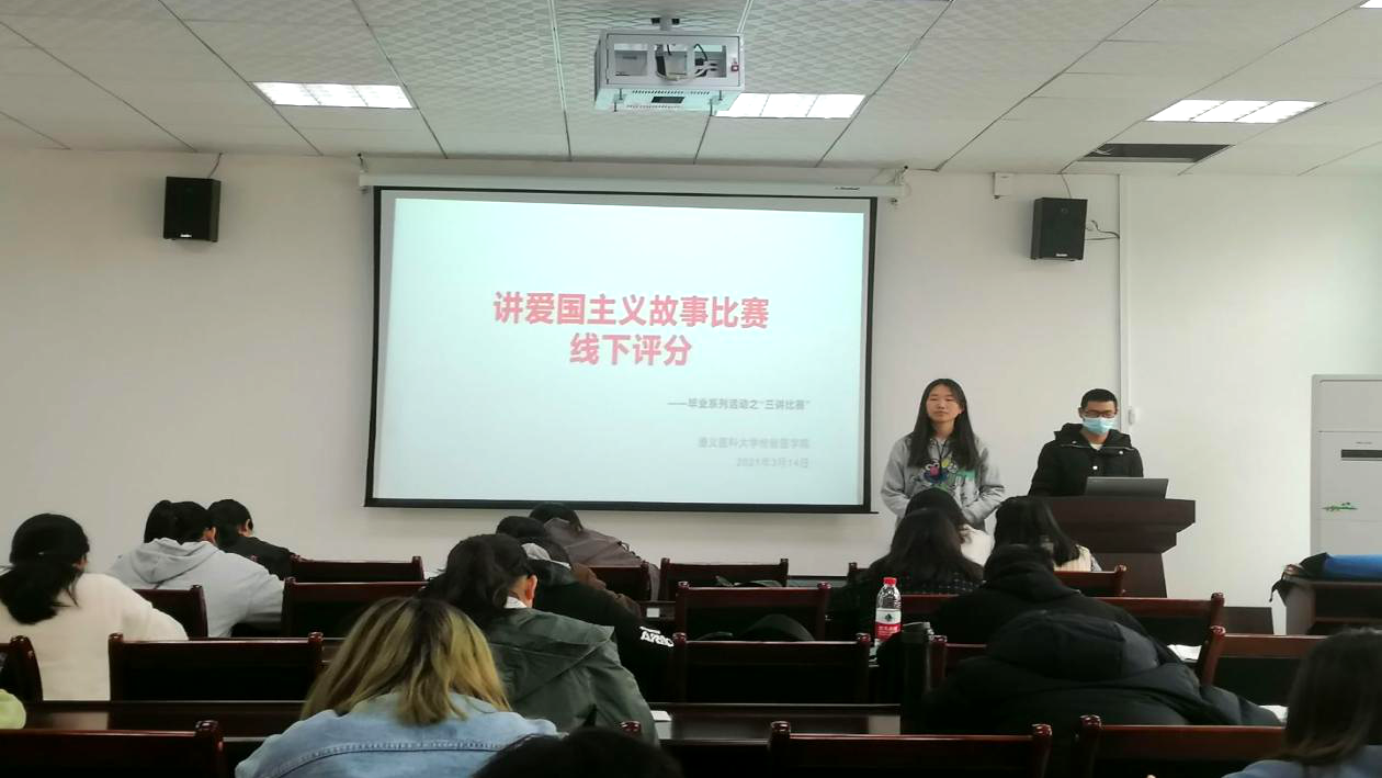 为了讲好爱国主义故事,培养爱国主义思想感情,弘扬民族精神,提高爱国觉悟,遵义医科大学检验医学院于2021年3月13日-14日在学院学术报告厅举办“讲爱国主义故事”比赛活动。检验医学院党委书记罗开源、副院长闵迅、蔡亮容、胡永林、张涛、王勇祥、付裕、陆超等老师和各班选手参加此次活动。