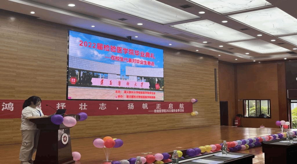 时光犹如一去不复返的逝川,毕业季如期而至。2022年5月30日下午3点遵义医科大学检验医学院在道德讲堂举办2022届毕业典礼。检验医学院书记罗开源、副院长闵迅、关工委主任唐彦萍、办公室主任蔡亮容、各教研室主任、学科任教老师、毕业年级班主任和辅导员及全体在校学生参加本次活动。