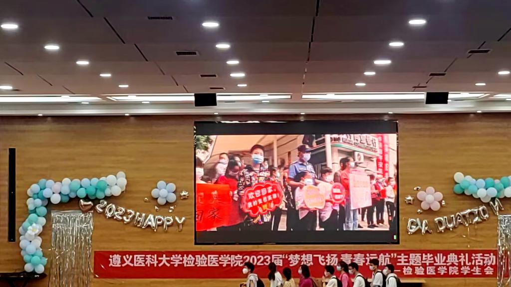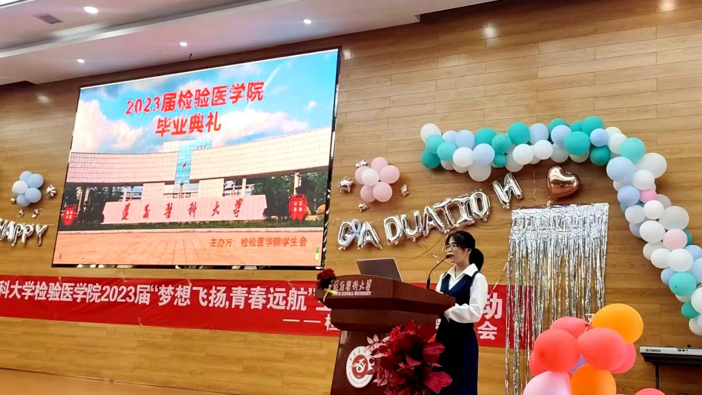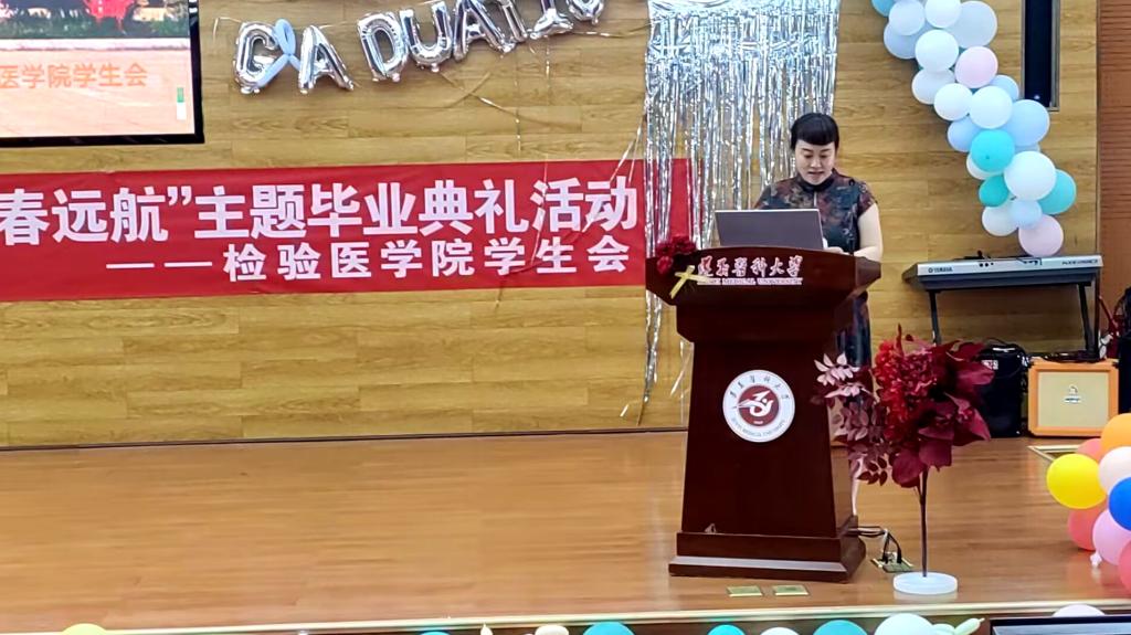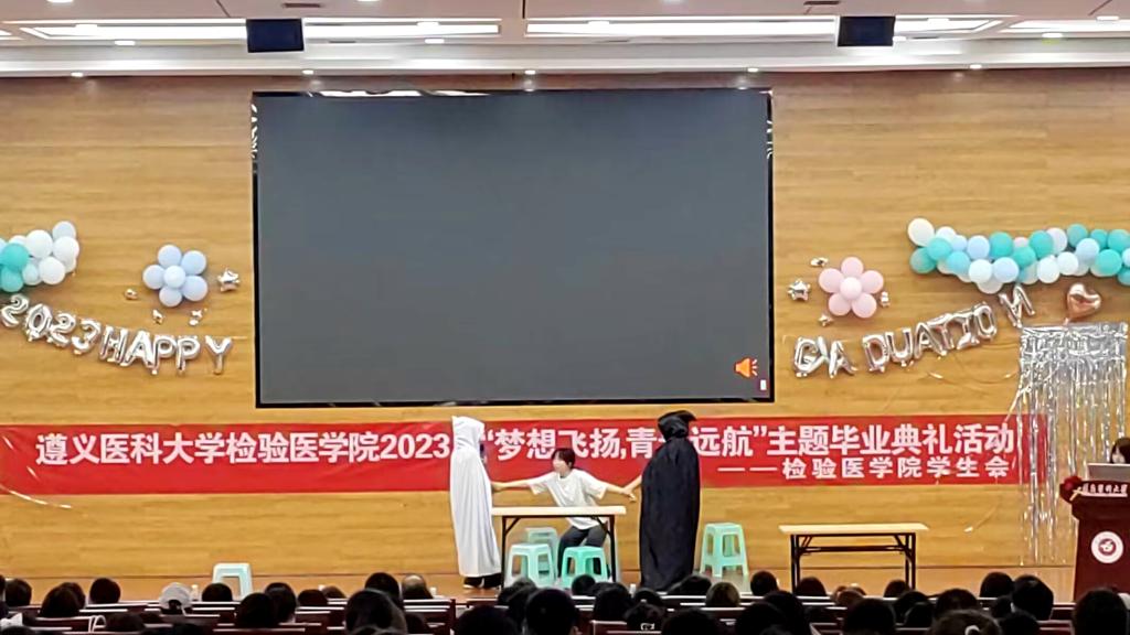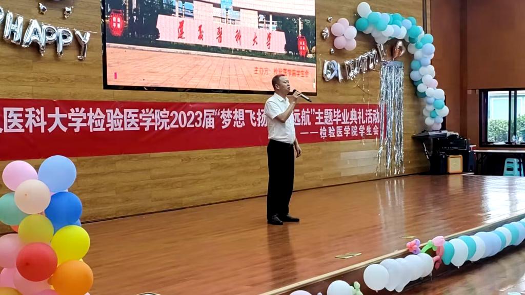 即将到来的六月,对于毕业生而言是大学生涯的告别时刻,也是人生新征程的启航之时。为庆祝毕业生们圆满完成学业,表达对毕业生们的美好祝福,检验医学院于2023年5月28日下午在遵义医科大学新蒲校区道德讲堂举办了2023届毕业季典礼活动。本次毕业典礼的主题是“梦想飞扬,青春远航”。检验医学院党委书记周光润、检验医学院副院长闵迅、检验医学院党委副书记王玺出席本次活动,各科室负责人、辅导员、兼职班主任以及全体在校同学参与此次毕业典礼活动。