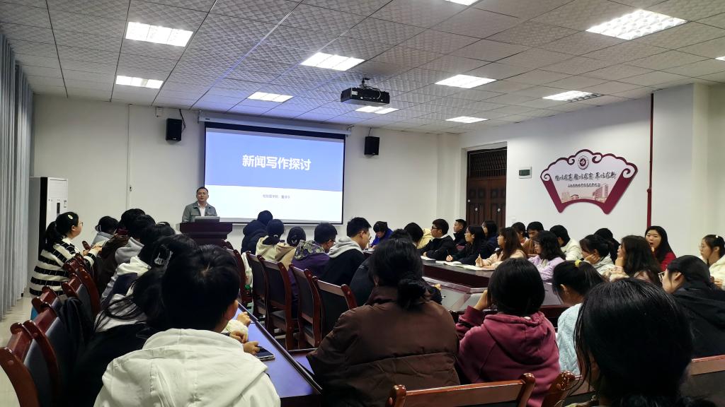 为进一步提升遵义医科大学检验医学院通讯员、教职工及学生干部的新闻理论素养和新闻写作水平,构建一支善于发现、撰于业务,扬我遵医风貌的常态化通讯员队伍。检验医学院于2023年11月16日19:00在学院2-508会议室举办了新闻写作专题培训。本次培训特邀检验医学院/科通讯员董泽令老师授课。学院办公室、教务科工作人员、各党支部书记、学院网络宣传员、网络评论员、院团委学生会主要负责人及宣传部门成员、各班团支书、宣传委员近50人参会。检验医学院党委书记周光润主持培训会。