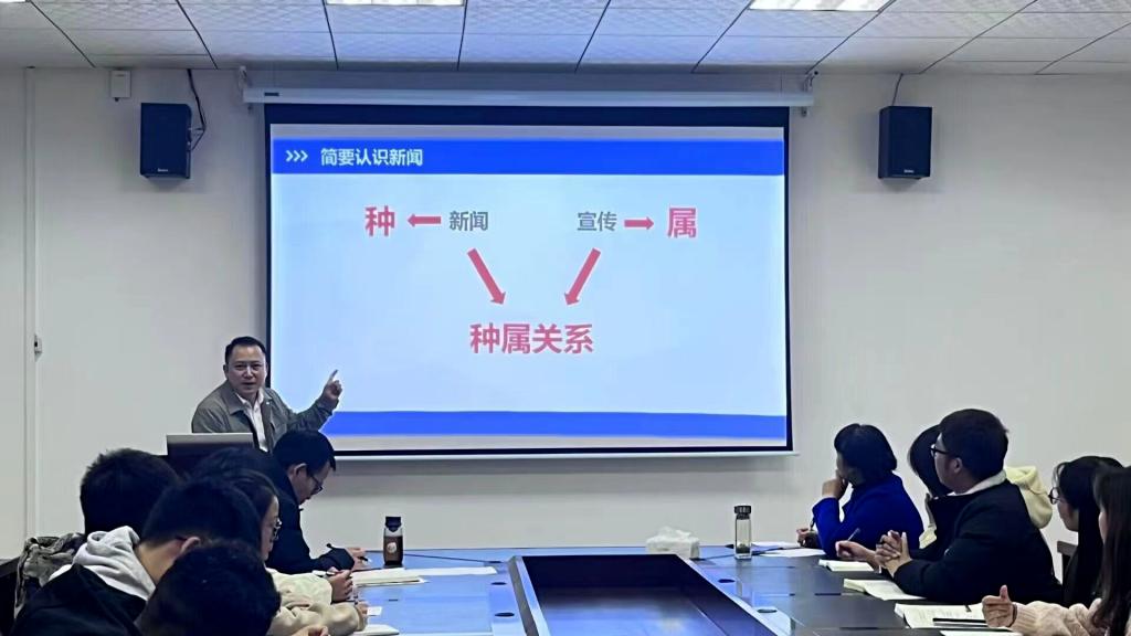 董老师以“新闻写作探讨”为题对与会人员进行了培训。培训伊始,董老师阐释了新闻与宣传两个概念的区别,突出强调了新闻宣传的重要性和必要性。随后,他在介绍新闻写作相关理论的基础上,结合自身多年从事新闻宣传工作的经验和业内典型案例,着重讲述了新闻写作的要领。最后,董老师梳理总结了新闻写作的日常注意事项,以便提高表达的准确性和行文的规范性。董老师授课风趣幽默,语言生动形象,时而引经据典,时而举例示范,妙语连珠,精彩纷呈,参训人员全程专注听讲,认真记录,积极互动。