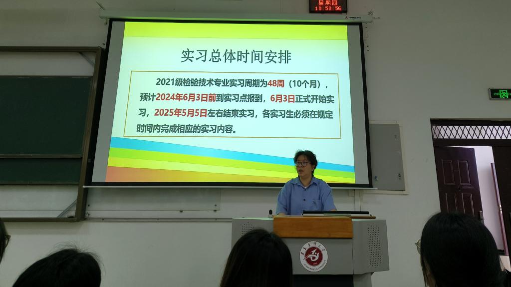 最后,辅导员付裕就各实习方向的实习纪律和注意事项进行培训,她强调,实习期间各基地的实习同学要严格遵守实习单位的规章制度,服从带教老师安排,积极参加科室活动,主动学习临床知识,不断提升自身综合素质,提醒同学们要注意与患者沟通,树立良好的医德医风,展现检验医学院学子的良好风貌。