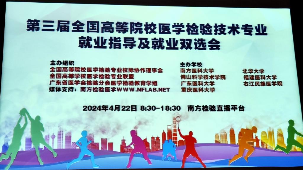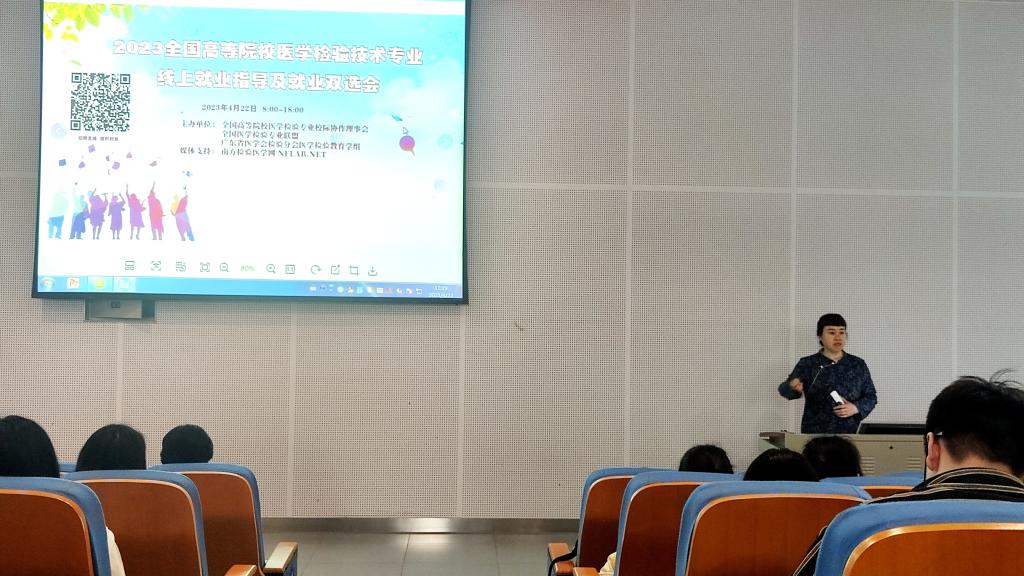 2023年4月22日8:00—18:00,由南方医科大学、北华大学、佛山科学技术学院等院校主办,遵义医科大学检验医学院协办的第三届全国高等院校医学检验技术专业就业指导及就业双选会顺利举行。会议采取线上线下同步进行的方式召开,检验医学院大三、大四全体同学于图书馆3号厅线上参与此次就业指导及就业双选会。