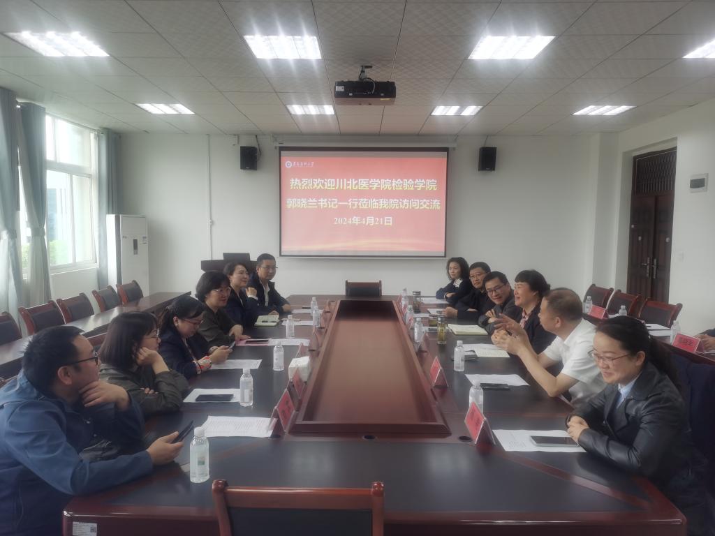 学院党委书记周光润对川北医学院检验医学院党委书记郭晓兰一行的到来表示热烈欢迎。希望郭晓兰书记率队专程来访交流,共同分享临床教学科研成果,加强对口交流,开展深层次合作。