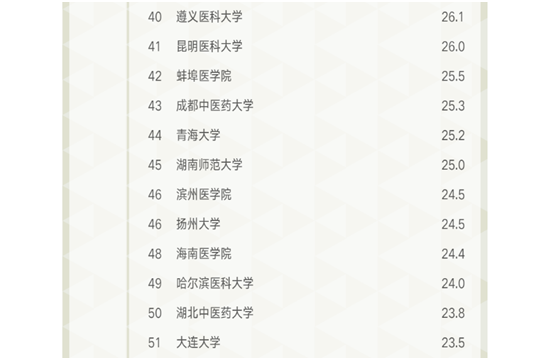 “软科中国大学专业排名”设计了独具特色的专业竞争力评价框架,通过学校——学科——专业三个层次的评价汇总形成对专业的综合评价。排名指标体系设置学校条件、学科支撑、专业生源、专业就业、专业条件5个指标类别,共19项测量指标。在全国招收医学检验技术专业的146所高等院校中我校医学检验技术专业通过各项测量指标综合测量后在上榜的79所高校中荣获第40位排名。