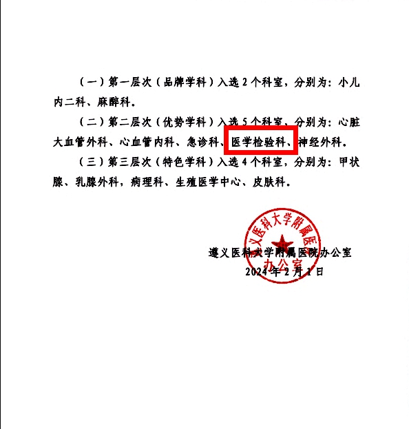 热烈祝贺医学检验科被遴选为遵义医科大学附属医院第二层次(优势学科)!