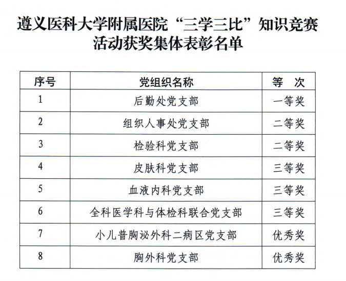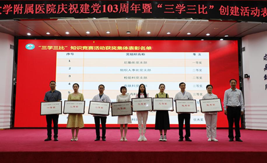 检验科党支部在遵医附院召开庆祝建党103周年暨“三学三比”创建活动表彰大会中荣获示范基层党支部表彰、知识竞赛二等奖;田地、罗欣欣两位中共党员分获优秀共产党员表彰。