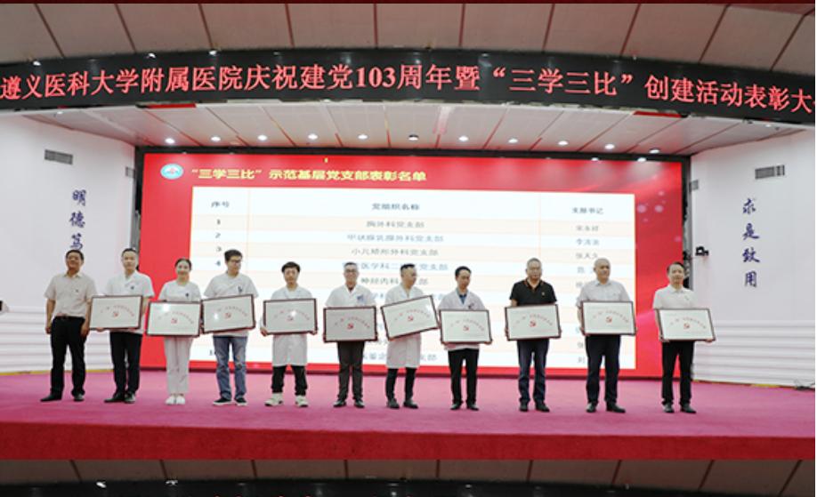 2024年6月28日,遵医附院召开庆祝建党103周年暨“三学三比”创建活动表彰大会。会议对“三学三比”创建活动开展以来涌现的一批先进集体和个人进行表彰,号召大家进一步巩固提升品牌创建成效,展现新担当、体现新作为、干出新业绩,在医院高质量发展中贡献力量。