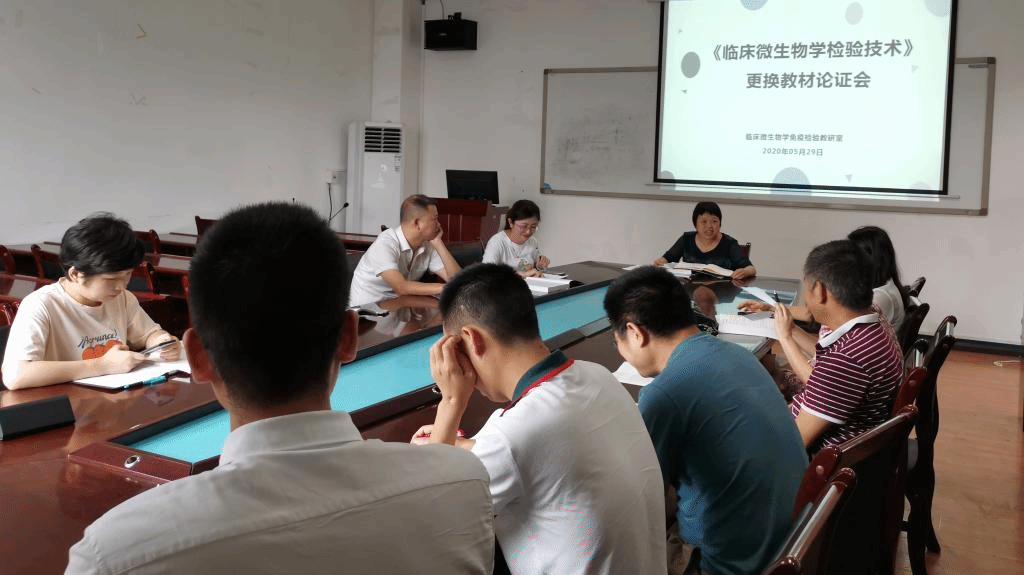 2020年05月29日下午,临床微生物免疫检验教研室召开2020-2021学年第一学期教材更换论证会。检验医学院副院长闵迅及临床微生物学课程全体教师参会,教研室主任陈泽慧主持。
