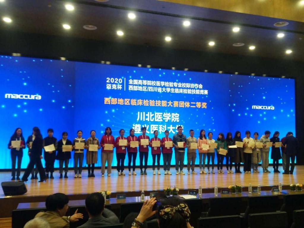 此次竞赛共设置在线形态读片、临床生物化学检验、临床基础检验、临床微生物检验、临床免疫学检验、临床血液学检验六个竞赛站点。参赛高校覆盖云、贵、川、渝、甘5省,共有十所高等院校派出20支队伍同场竞技,我校教师及2017级医学检验技术专业学生在比赛中以扎实的功底和专业的素养喜获佳绩。