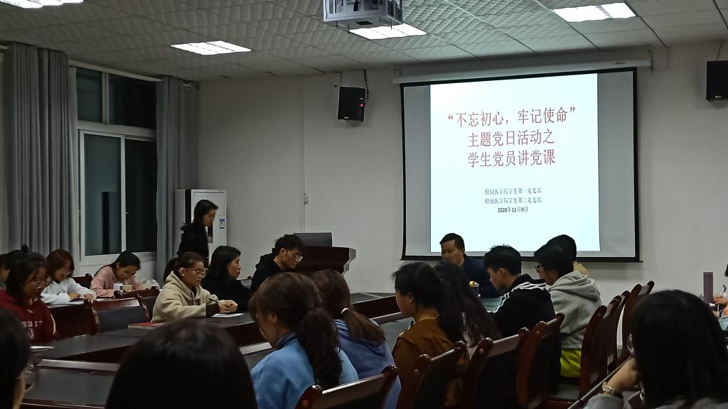 2020年11月9日18:30,检验医学院学生党支部于检验医学院会议室开展“不忘初心、牢记使命”主题党日活动。活动以“大学生中共党员讲党课、讲好党课”为宗旨,旨在通过类似活动的深入开展,引领全体党员时刻坚定爱国爱党的信念,继承发扬我党的优良传统和作风。近40名党员参会。
