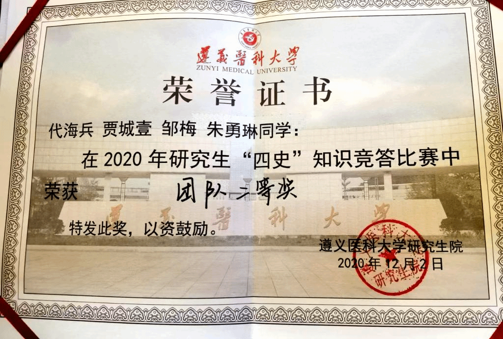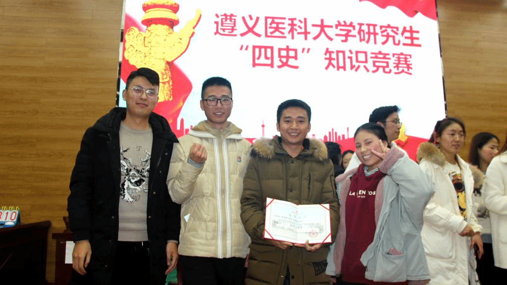 本次活动以“学四史忆峥嵘,悟初心担使命”为主题,共有十一支队伍参与,包括第一临床学院、药学院、马克思主义学院、护理学院等组建队伍。在活动中,我院“一心向党”队成员们团结一致,奋发图强,勇往直前,历经初赛、决赛环节进入到激动人心的加时赛环节。有趣的是,历经两轮加时赛,我院“一心向党”队伍与三附院组建队伍、马克思主义学院组建队伍依旧难分胜负。经过几次激烈的角逐,我院“一心向党”队最终斩获二等奖。