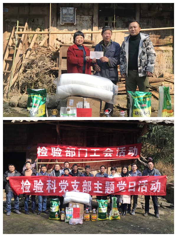 了解到两位老人的具体情况后,支部书记陈泽慧及检验部门工会主席董泽令积极倡议大家伸出援助之手,献爱心,以解两位老人之急,大家积极响应,慷慨解囊,纷纷捐钱捐物,为两位老人筹集大量生活必需品。当老人家握手说道:“感谢党、感谢大家,你们真细心”时,我们的内心无不充满幸福。