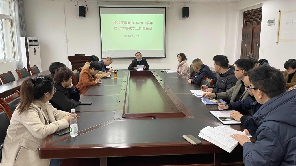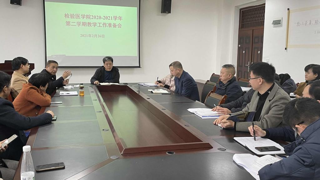 为加强教学管理、保障新学期各项教学工作顺利开展,按照学校新学期教学工作部署,检验医学院于2021年2月26日召开新学期教学工作准备会议。会议由闵迅副院长主持,检验医学院领导班子、各教研室主任、课程组长以及教学、教辅等相关工作人员参加了此次会议。