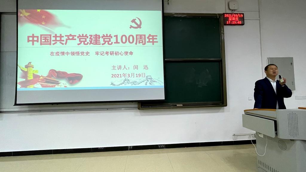 闵迅副院长作“在疫情中领悟党史,牢记考研初心使命”主题讲座