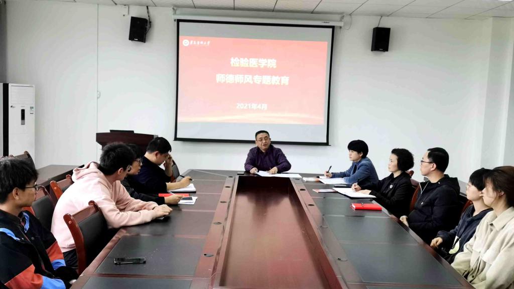 为深入贯彻落实习近平总书记在全国教育大会上的讲话精神以及有关教师队伍建设系列重要讲话精神,增强教师立德树人初心,以德施教、以德立身的责任意识,按照学校总体部署,2021年4月27日检验医学院党委组织全体教师开展师德师风专题学习,由党委书记罗开源领学。