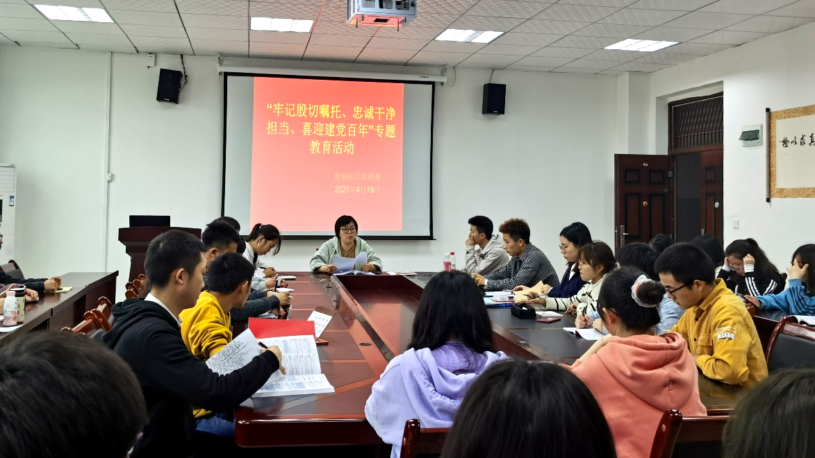 为了深入学习习近平总书记视察清华大学的重要讲话精神,引导我院全体团员和青年大学生从历史中因应现实、观照自身,不断增强听党话、跟党走的思想自觉和行动自觉。遵义医科大学检验医学院团委于2021年4月22日下午7点在检验医学院会议室组织开展党史学习和“牢记殷切嘱托、忠诚干净担当、喜迎建党百年”专题教育系列活动之“薪火相传、永续发展”学习活动。检验医学院团委副书记付裕、团委学生会全体成员和团员干部代表参会。