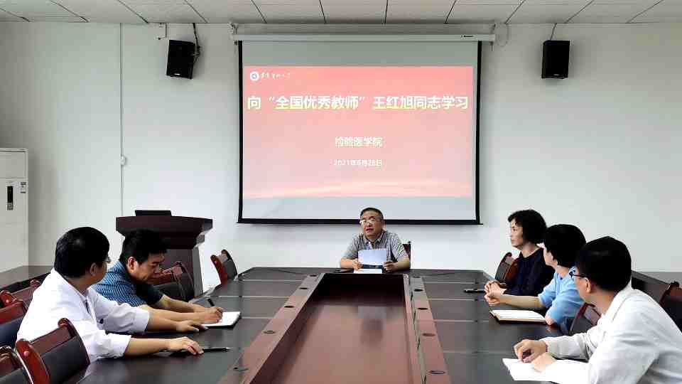2021年6月29日上午10点,检验医学院在学院会议室开展了向“全国优秀教师”王红旭同志学习的主题教育活动。检验医学院院部教师参会,会议由检验医学院党委书记罗开源主持。