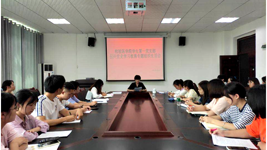 2021年9月2日12:00,检验医学院学生第一党支部围绕“学党史、悟思想、办实事、开新局”的主题,按照“学史明理、学史增信、学史崇德、学史力行”的要求,结合党支部实际工作召开了本次专题组织生活会。院党委书记罗开源同志以普通党员的身份和支部委员及全体党员同志参加会议。会议由党支部副书记陆超主持。