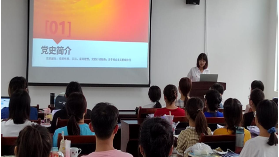 检验医学院学生第一党支部组织委员谌孙美为同学们进行入党知识培训