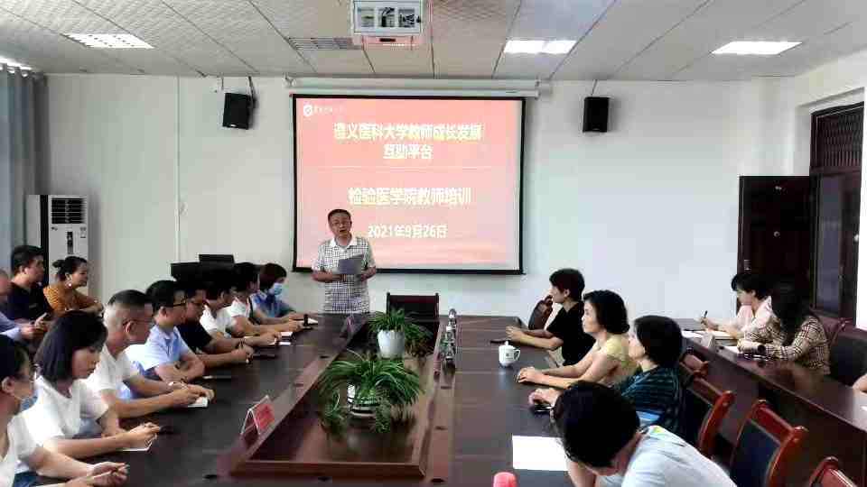 为贯彻落实党中央、国务院《关于全面深化新时代教师队伍建设改革的意见》和《深化新时代教育评价改革总体方案》,加强检验医学院新时代高校教师队伍建设改革,促进教师专业成长,提升师资队伍素质,实现学院全面和可持续发展。检验医学院党委罗开源书记、林世德院长于9月26日在新蒲校区检验医学院会议室为全院47名中青年及骨干教师开展培训;同时学院还邀请基础医学院党委书记、人文医学研究中心研究员龙艺教授开展题为“从无声到有声 无为到有为”的讲座,会议由学院党委罗开源书记主持。