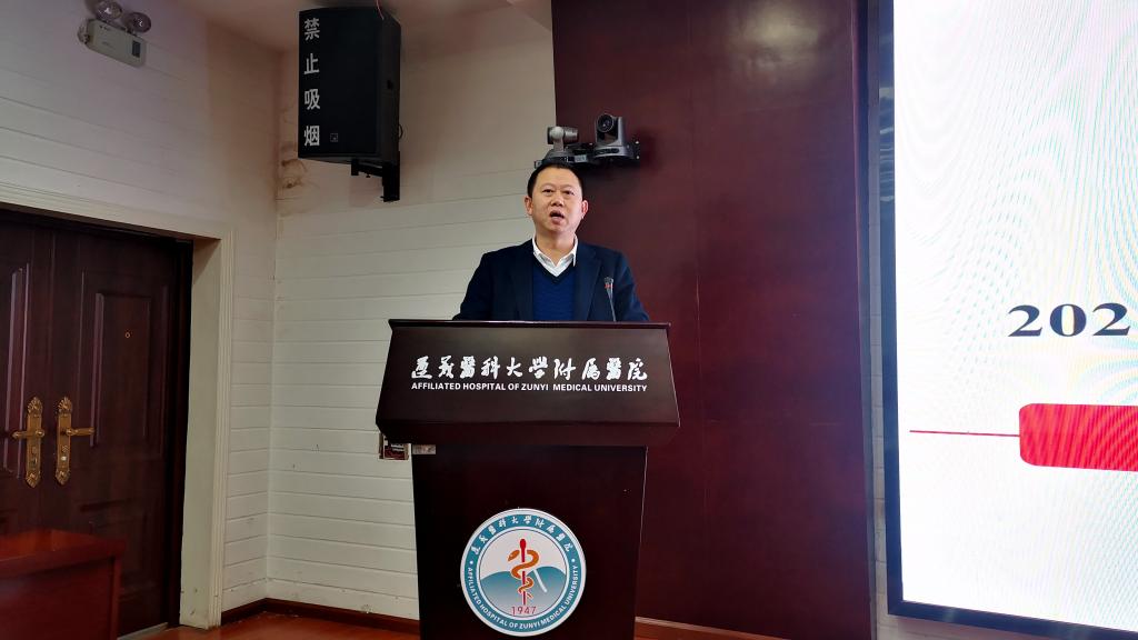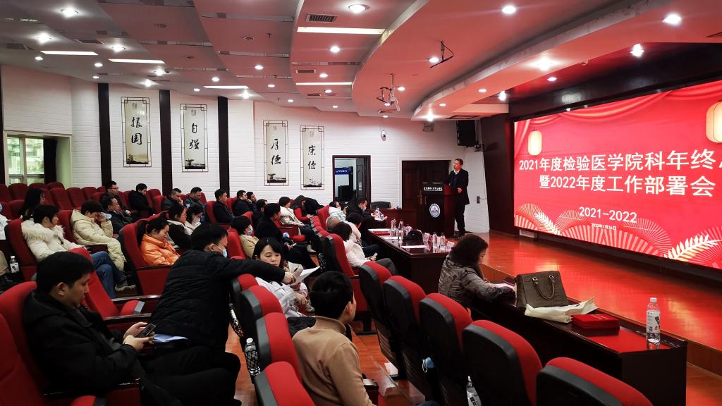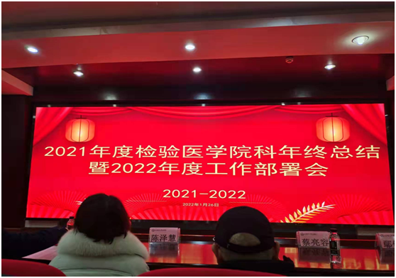 2022年1月26日下午三点,遵义医科大学检验医学院附属医院检验科于遵义医科大学大连路校区图书馆多功能厅召开了2021年度检验院/科工作总结暨2022年度工作部署会议。与会人员有检验院/科全体职工及副科级以上干部。本次会议由遵义医科大学检验医学院办公室主任蔡亮容主持。