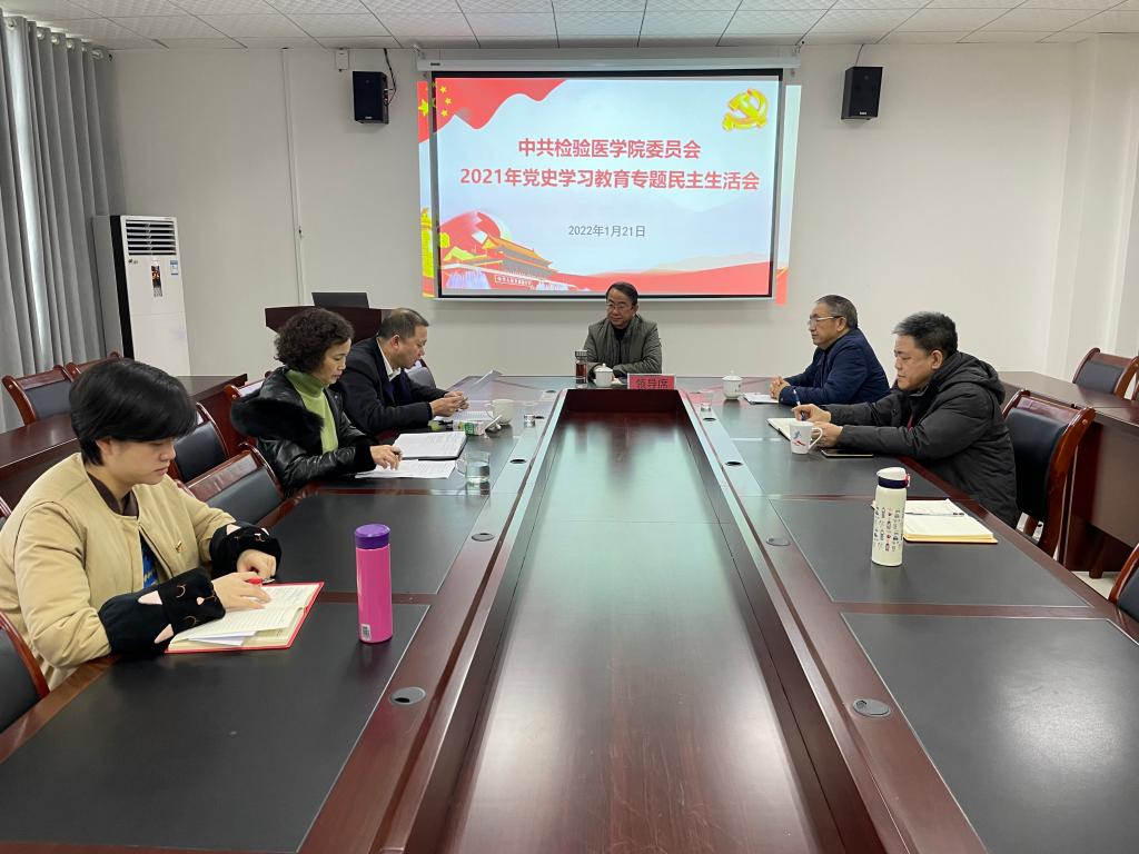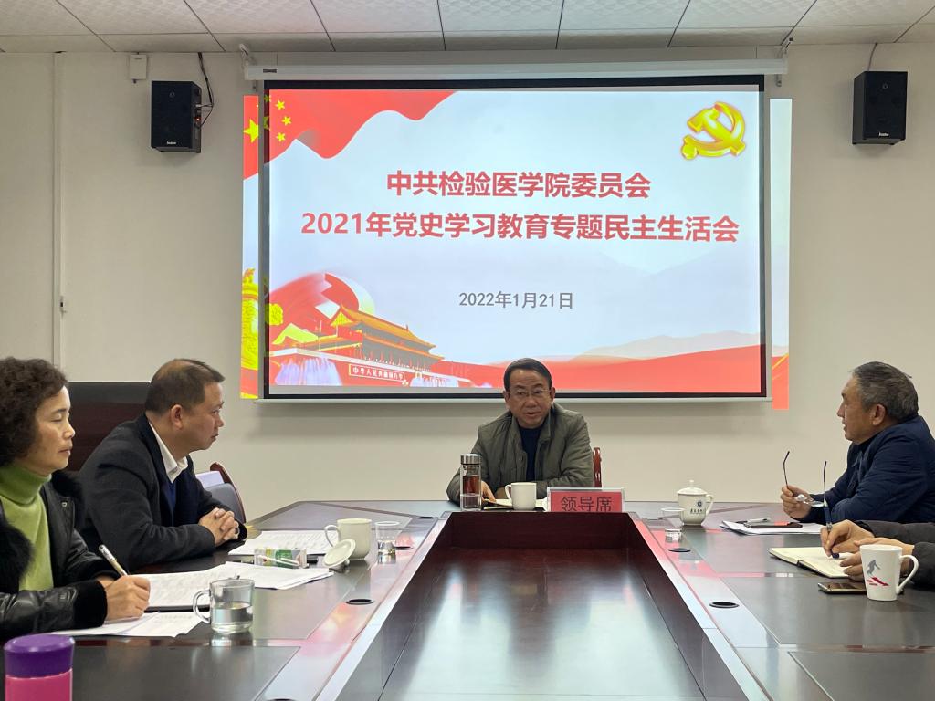 按照学校和党史学习教育领导小组《中共遵义医科大学委员会关于认真开好党史学习教育专题民主生活会的通知》安排部署,检验医学院在充分准备的基础上,于2022年1月21日上午10:00在检验医学院会议室召开了党史学习教育专题民主生活会,学院党委书记罗开源同志主持会议。遵义医科大学党委委员、纪委书记李正旭同志到会指导并作点评。