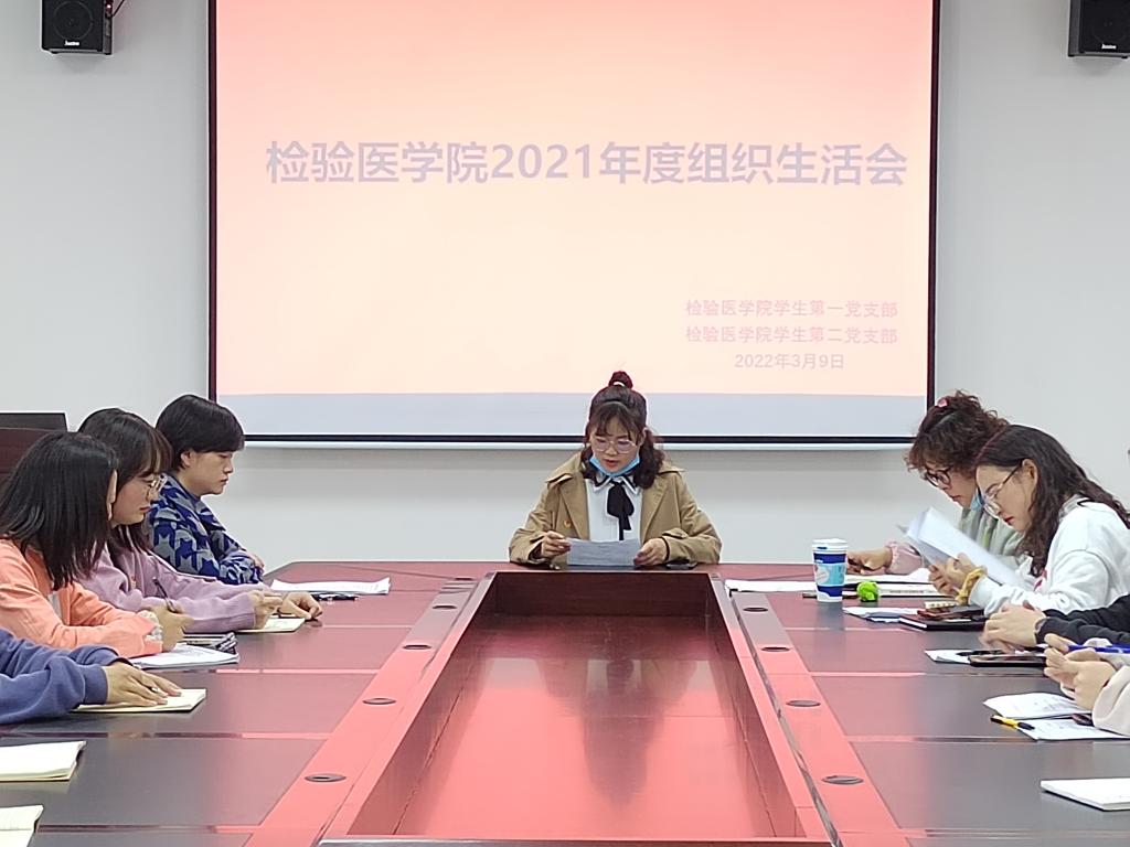 按照中共遵义医科大学附属医院委员会《关于基层党组织召开2021年度组织生活会和开展民主评议党员的通知》要求,结合党支部实际情况,检验医学院学生第一党支部于2022年3月9日14:00在检验医学院会议室召开了本次组织生活会暨开展民主评议党员工作。检验医学院党委书记罗开源同志以普通党员的身份参加会议。会议由党支部副书记陆超主持。
