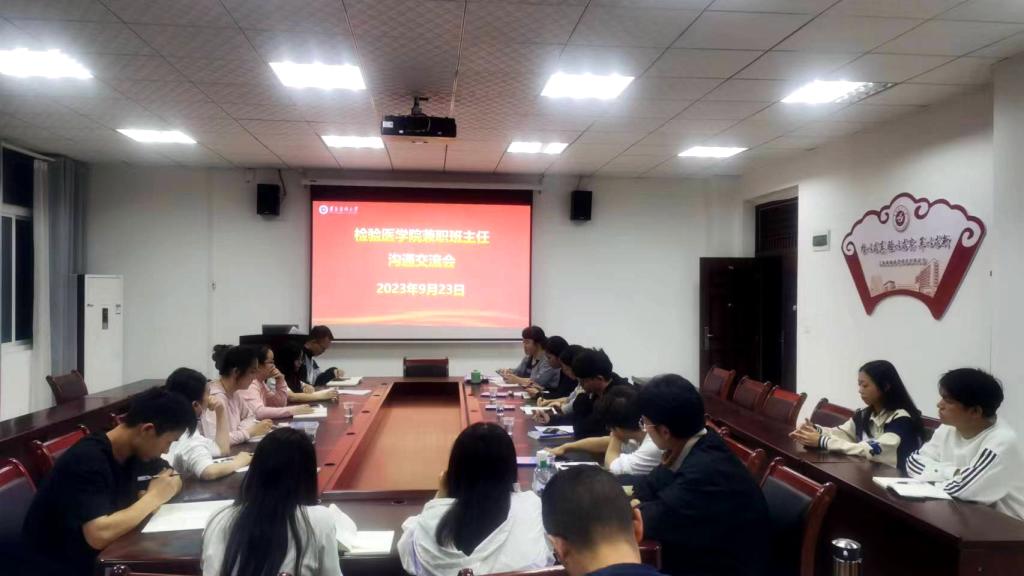 为进一步落实习近平总书记对做好大学生思想政治教育工作的要求,加强检验医学院学生教育管理力量,促进兼职班主任队伍建设,9月23日晚上7:00在检验医学院2-508会议室举行了检验医学院兼职班主任工作座谈会。全院12名兼职班主任、辅导员张增平、教务科王勇祥及部分学生代表参加会议,会议由党委书记周光润主持。