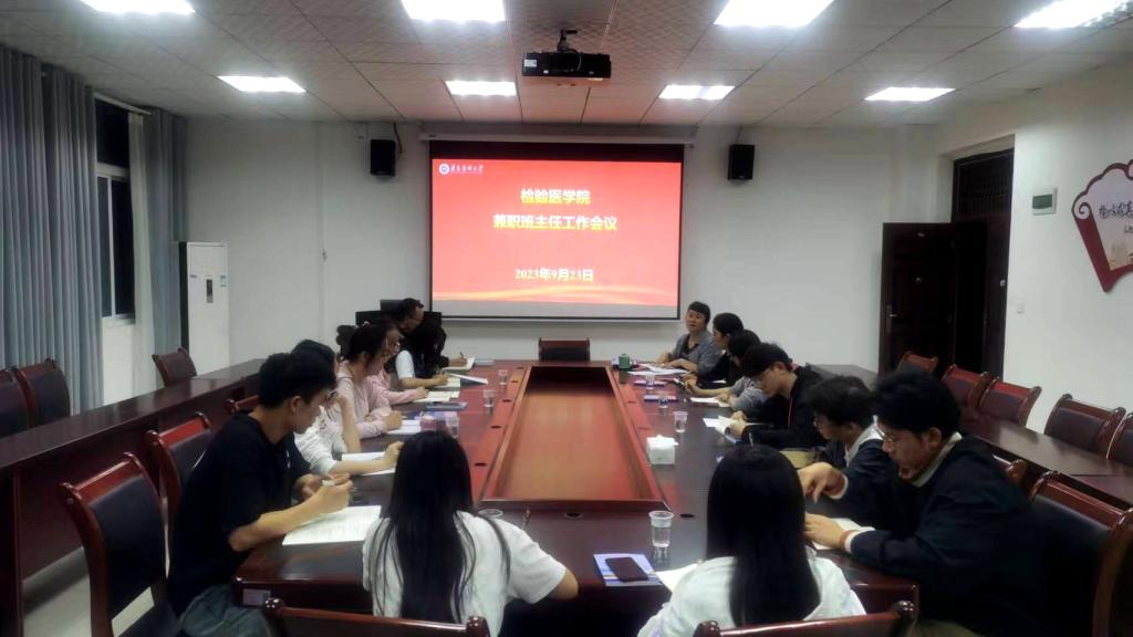 首先业务学习环节由教务科王勇祥老师领学了本科教育教学审核评估有关知识。其次是工作部署,会议传达学习了学校、检验医学院兼职班主任有关管理制度。